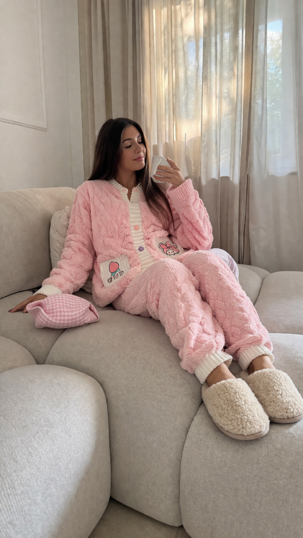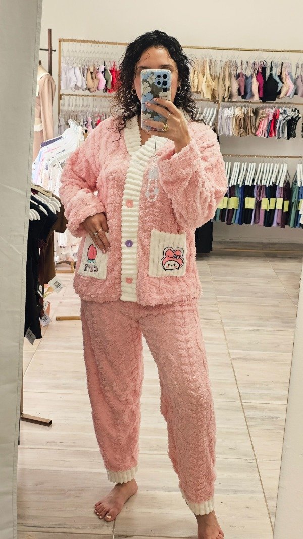 Pijama saco con botones más pantalón largo.