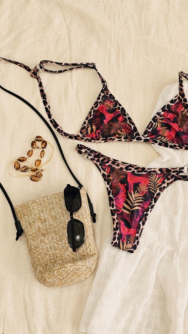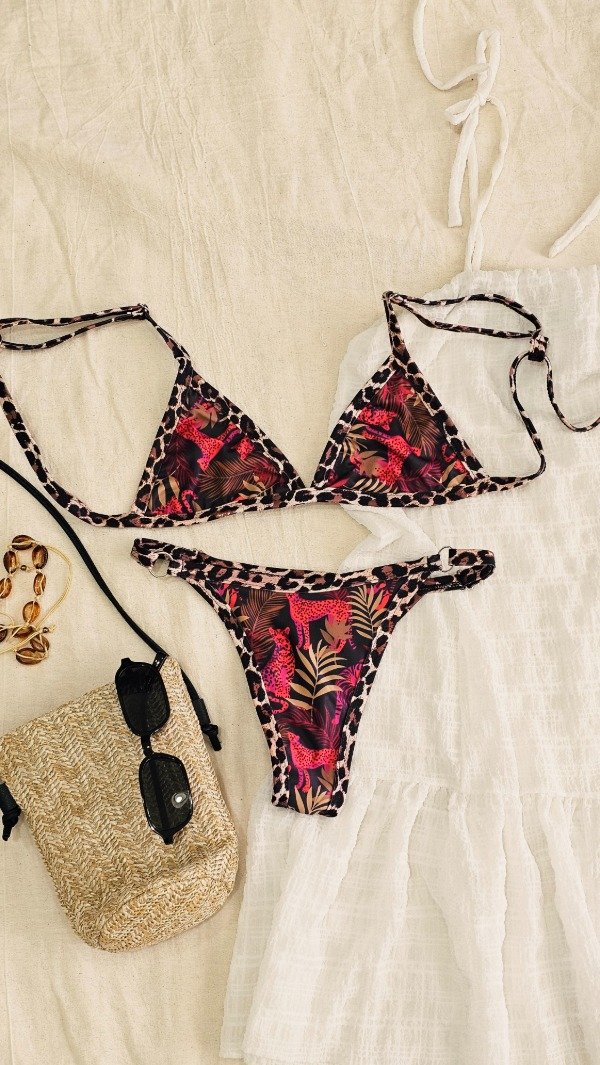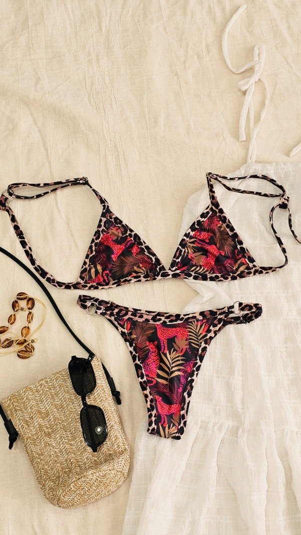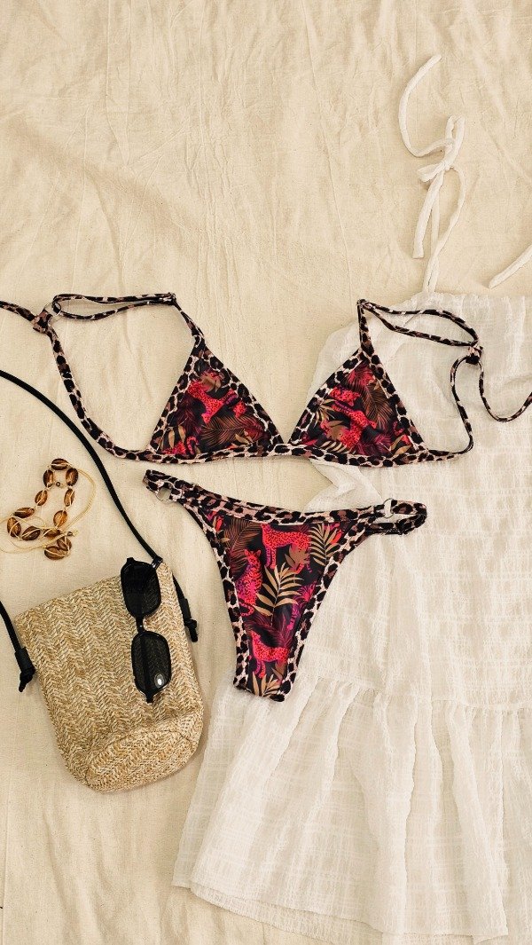 Set Aine. Corpiño triangulo fijo, con bretel regulable que se ata por la espalda