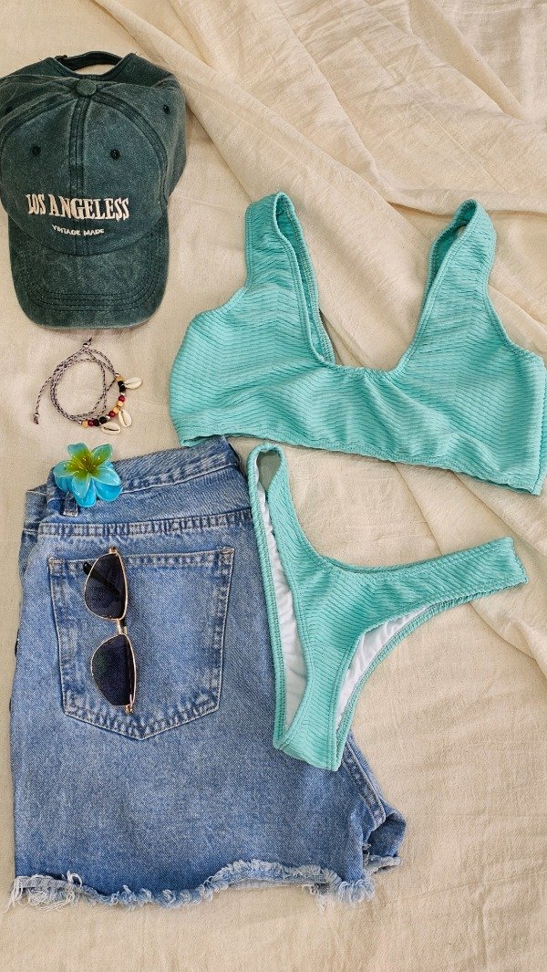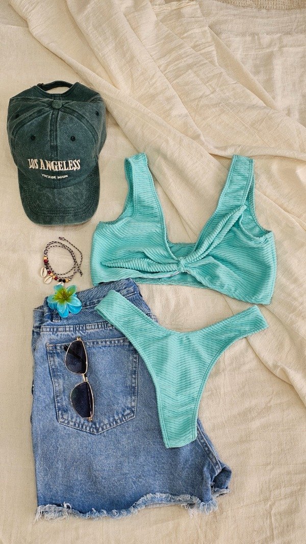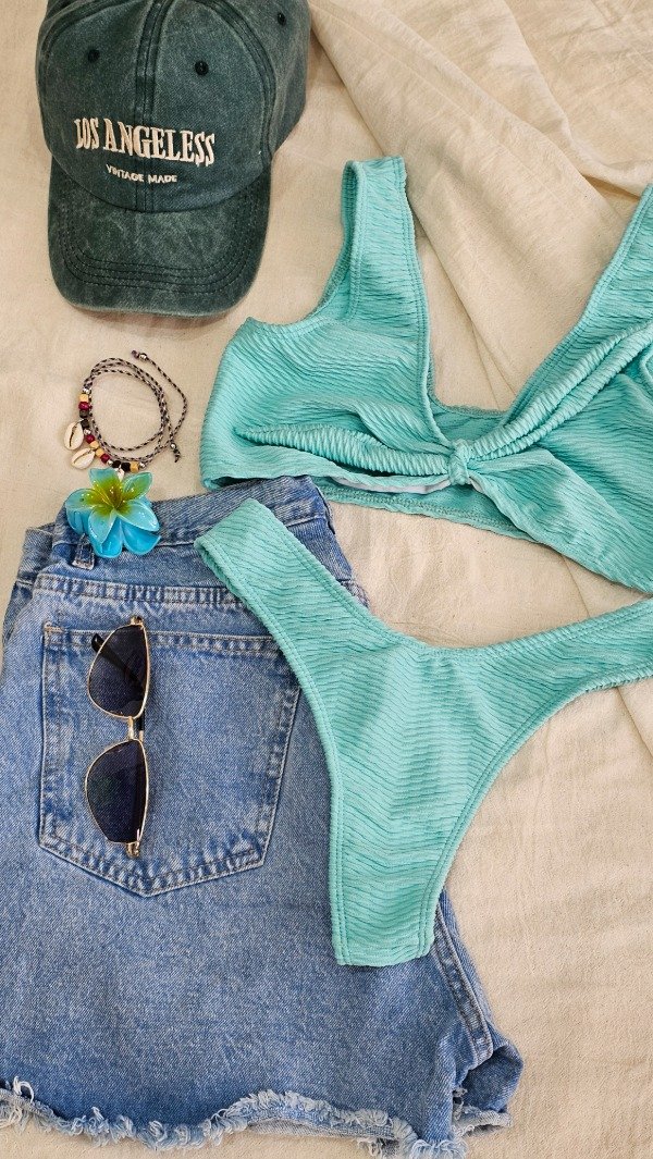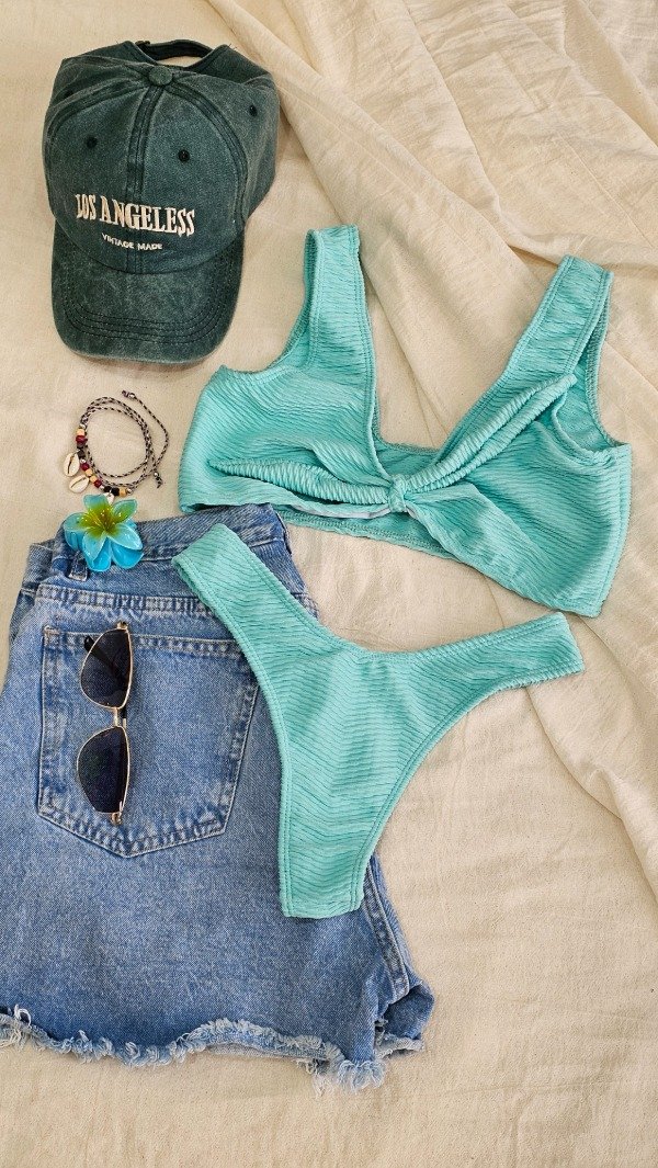 Bikini con corpiño estilo top con lazo para atar en el centro