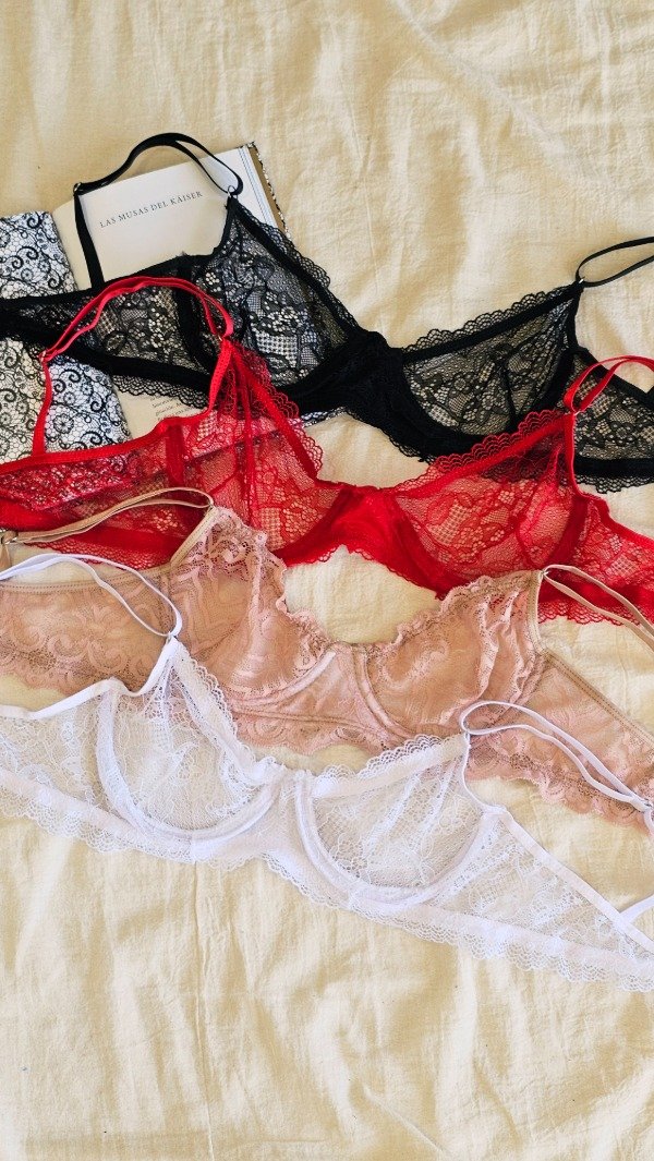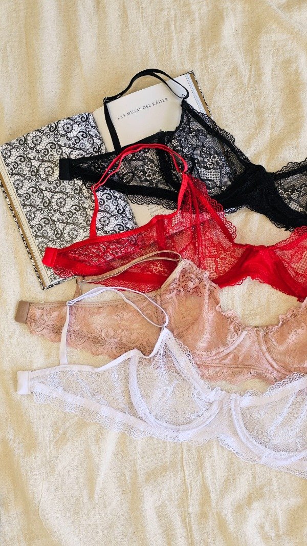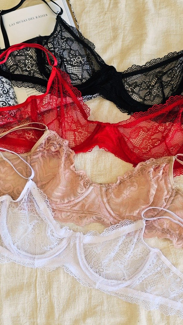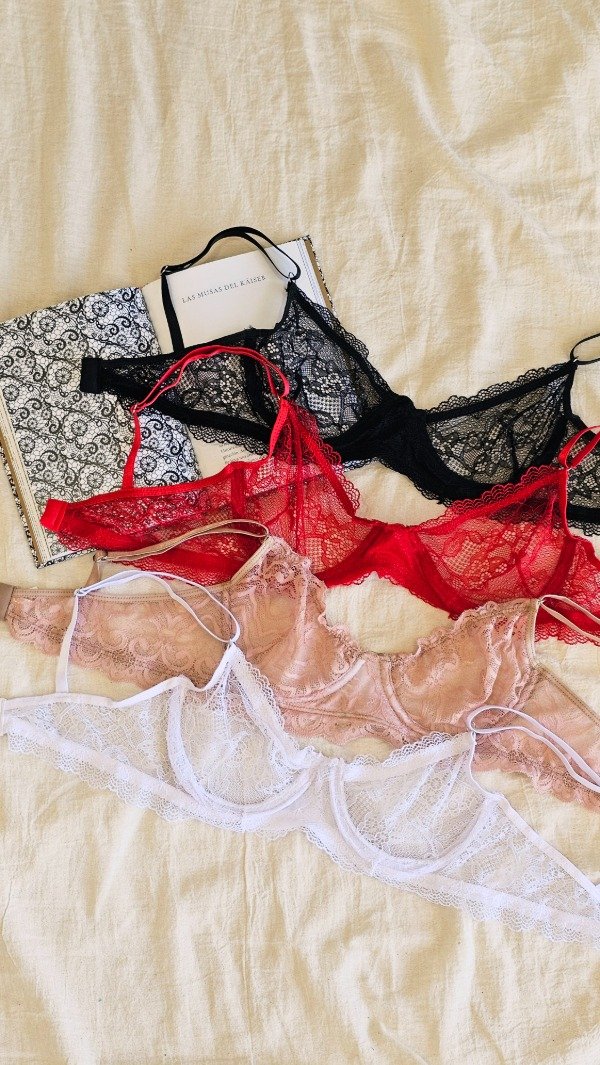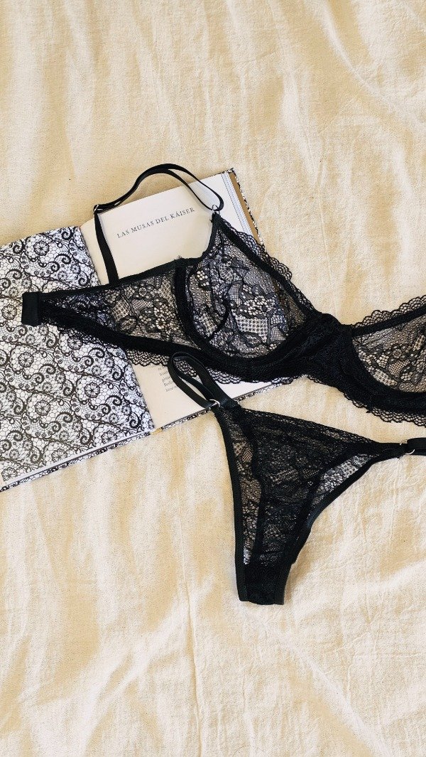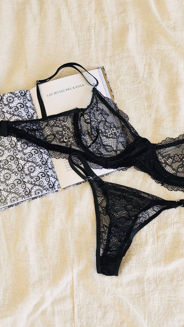 Set de encaje. Corpiño con aro, bretel regulable y espalda con Extensor en 2 posiciones