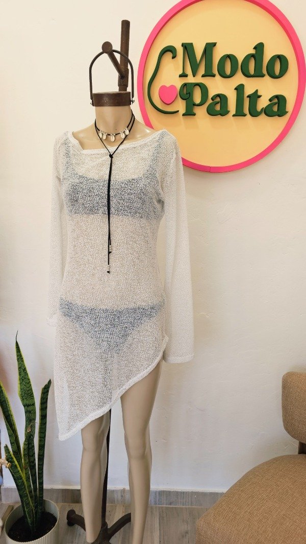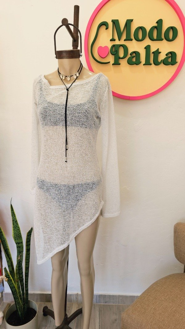 Manga larga, pico irregular, un hombro caído